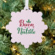 Front: Cute Italian Merry Christmas/Buon tree ornament in red and green on white in a beautiful pewter metal snowflake frame.