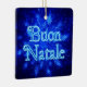 A swarm of blue fractal snowflakes. Italian text reading "Buon Natale" appears in glowing blue and white.