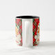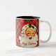 Merry Christmas Vintage Santa Plaid Mug Personalise it. A jolly vintage Santa face against a red plaid background pattern.