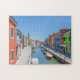 A beautiful photograph of colourful houses along a canal on the island of Burano near Venice in Italy printed on a puzzle.