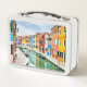 This is a standard metal lunchbox that appears to work just fine. We designed this box ourselves with an uploaded photo and custom text on the front and back. It looks absolutely beautiful except the front of the lunchbox is not centered like it shows in the photo. The print borders don't align with the inset flat part of the box where the preview photo online showed it perfectly centered in there. The back looks nice and centered though.