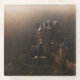 Glass photo coaster with the mediaeval Burg Eltz castle, built on a hill surrounded by forests with trees in autumn colours in the morning fog at sunrise, creating a spooky image near Mosel river in Germany.
