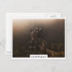 Photo postcard of the mediaeval Burg Eltz castle, built on a hill surrounded by forests with trees in autumn colours in the morning fog at sunrise, creating a spooky image near Mosel river in Germany with a white edge and in a white box the text 'Germany'.