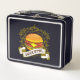 This is a standard metal lunchbox that appears to work just fine. We designed this box ourselves with an uploaded photo and custom text on the front and back. It looks absolutely beautiful except the front of the lunchbox is not centered like it shows in the photo. The print borders don't align with the inset flat part of the box where the preview photo online showed it perfectly centered in there. The back looks nice and centered though.