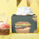 The original burger artwork on a dark green wrapping paper