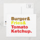Burger & Fries & Tomato Ketchup. Postcard