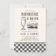 Casual "burgers & beer" rehearsal dinner invitations feature rustic style illustrations and a plaid border. Perfect for summer or outdoor wedding rehearsal dinners, these casual chic invitations are easily customised with your celebration details.