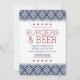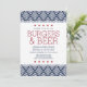 Our summery invitations are perfect for your casual wedding rehearsal dinner! Design features a classic colour palette of red, white and blue, with a diamond chevron patterned background, red star accents, and modern lettering in navy blue and rich dark red. All text fields are fully customisable, making it easy for you to add your party details and change the holiday, occasion or event type.