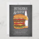 Modern and fun chalkboard burgers & brew barbecue invitation featuring a bottle of beer with a huge hamburgers set on a black chalkboard background & a matching red chequered cloth back for a special touch . Popular burger invite for all your summer bbq party get togethers.