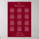 Burgundy 12 Table Wedding Seating Chart Poster, please personalise the names of the couple and the names of the guests along with any of the other text that you may wish to personalise. A stylish seating chart poster featuring elegant white text on a lovely burgundy colour background.