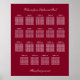Burgundy 19 Table Wedding Seating Chart Poster