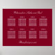 Burgundy 8 Table Wedding Seating Chart Poster, please personalize the names of the couple and the names of the guests along with any of the other text that you may wish to personalize. A stylish seating chart poster featuring elegant white text on a lovely burgundy color background.