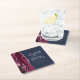 This elegant modern wedding coaster features a burgundy red watercolor agate geode design trimmed with faux silver glitter. Easily customise the silver grey text on a navy blue background, with the couple's names in handwriting calligraphy over a large ampersand.