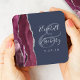 Burgundy Agate Script Silver Navy Blue Wedding Square Paper Coaster