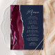Burgundy Agate Silver Script Navy Blue Wedding Menu