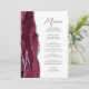 This elegant modern wedding menu features a burgundy red watercolor agate border trimmed with faux silver glitter. The customisable text combines charcoal grey handwriting script and sans serif fonts on a white background. The burgundy and silver agate design is repeated on the reverse side.