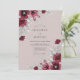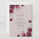 This elegant design features deep burgundy anemones blooming against a soft dusty pink background. Shimmering silver-gray foliage adds a touch of sophisticated contrast to the floral arrangement. The mood is romantic and moody, making it ideal for a late autumn or winter event.