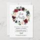 Burgundy and Blue Floral Wreath Tea Party Invitation. Invite family and friends to a tea party with this feminine and rustic invitation. This customisable invitation features watercolor floral wreath of blue, burgundy, red and blush flowers with foliage. This floral invitation is perfect for autumn and bohemian themed events. Matching items are available.