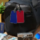 Burgundy and Blue Luggage Tag