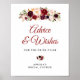 Painted watercolor burgundy and blush flowers and black lettering script. In loving memorial, bridal shower advice and wishes sign.