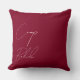 Elevate your bachelorette weekend decor with this elegant burgundy throw pillow from the Camp Bride collection. Featuring modern script typography in blush pink, this chic and customisable pillow is perfect for adding a personal touch to your celebration. Ideal as a keepsake, gift, or cosy addition to your glamping adventure, it complements the rest of the Camp Bride suite beautifully. Personalise with the bride's name to make it truly special!