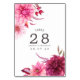 Burgundy (Marsala) and blush pink watercolor floral autumn wedding table numbers featuring autumn dahlias and leaves.