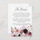 This Burgundy and Blush Floral Wedding Details Card is the perfect addition to your elegant wedding invitation suite. Printed with beautiful watercolor floral designs in shades of burgundy and blush pink, this romantic and botanical inspired enclosure card will provide guests with all the extra details they need for your special day.