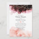 Virtual long distance bridal shower invitation featuring dense rich burgundy and blush pink watercolor paint splashes and a gold geometric frame.