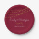 Burgundy Marsala and Faux Gold Foil String Lights Wedding Plates for a Elegant Wedding Reception or Rehearsal Dinner. The name and date can be updated on this plate.