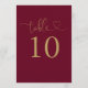 Burgundy And Gold Heart Script Table Number