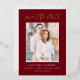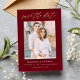 Announce your upcoming nuptials in style with our Elegant Script photo save the date card. The elegant save the date card features "save the date" in a gold foil calligraphy script with your engagement photo framed in burgundy. Personalise the simple save the date card by adding your names, wedding date, and wedding location. The minimalist save the date card reverses to a solid burgundy background or a colour of your choice.