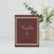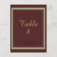 A classic elegant burgundy background accented by a gold border on this table seating card. Gold lettering. Customise by changing the number and adding to cart, then repeat for each number.