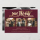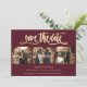 Elegant burgundy and gold wedding 4 photo save the date cards with modern calligraphy. Easily personalise this card with your images and wedding details including a wedding website.