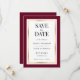 Complement your burgundy and gold wedding celebration with these simple, yet elegant save the date cards. Matching items available.