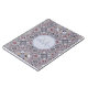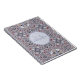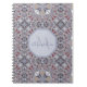Ornate burgundy and grey kaleidoscopic pattern on personalised notebook.