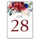 Burgundy red and navy blue flowers wedding table number cards