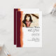 This simple and classic graduation party invitation features burgundy and orange colours with the look of torn paper along one side and a place to put your own senior portrait on the front. Totally customisable text allows you to use this grungy invitation for any event such as birthday parties and other special occasions.