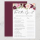 Find the guests. Mingle and chat with the guests to find the answer to their questions. Add this fun and playful shower game card to your event. It features watercolor floral bouquet of peach, purple and burgundy flowers with greenery accents. Personalise by adding your questions. This burgundy floral shower guessing game card is perfect for fall baby showers and bridal showers.