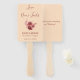 A beautiful wedding hand fan, this item displays "Love Never Fails" written beautifully using burgundy lettering on a peach background. Under the heading is a lovely bouquet of burgundy flowers. Then at the bottom, is the couple's name, venue, and wedding date presented in charming font. The back also has a peach background, customise yours today!