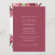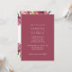 This invitations features your names and details on the front, in an timeless typographic arrangement in white over a trendy burgundy solid colour.