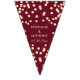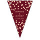 Burgundy and rose gold confetti wedding bunting flag. The design features a rose gold confetti pattern on burgundy background. Also, the text is rose gold.