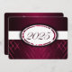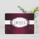Burgundy and white graduation invitation with light and dark burgundy stripes and a white ribbon going across showing the year of graduation. The back of the card is burgundy with white font for people to fill in the graduation announcements.