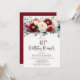 Burgundy and White Floral 40th Birthday Brunch Invitation
