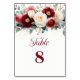 Burgundy and White Floral Wedding Table Number
