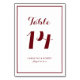 Burgundy and White Modern Calligraphy Wedding Table Number
