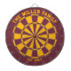 Burgundy and golden yellow dart board with two custom text areas. Great wedding gift!