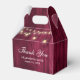 Rustic burgundy wedding thank you favour box featuring string lights on a barn wood background.