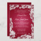 Lacy white baroque inspired floral wedding invitation set in cranberry wine or burgundy shades.