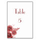 Illustrated here is a beautiful watercolor themed table number card. This design features a white background with a lovely burgundy flower illustration. The text has a lovely burgundy font. Very easy to customise, order yours today.