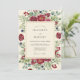 This design features a rich tapestry of deep red blossoms and variegated green foliage, accented with scattered dark berries. The artwork evokes a sophisticated, natural elegance, perfect for a refined autumnal or winter celebration. The lush botanical arrangement creates a captivating and organic border.